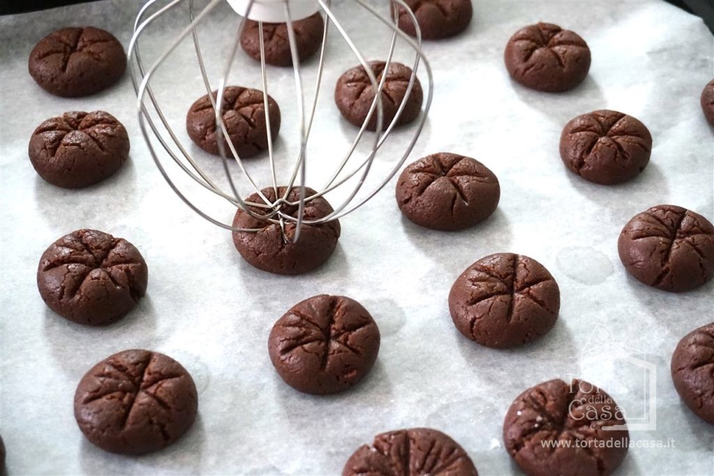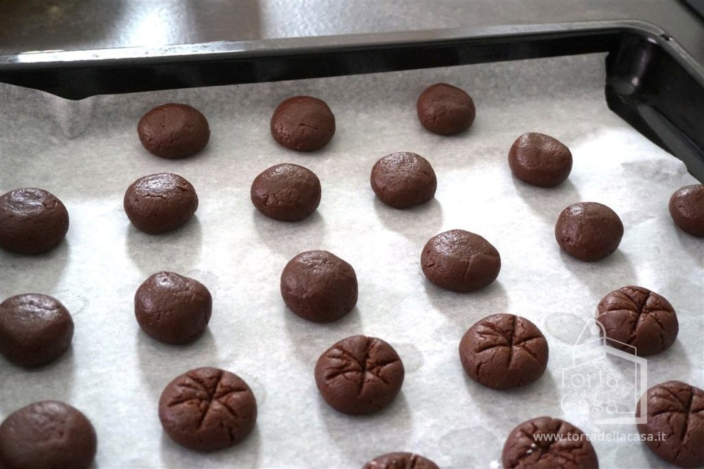 Posizionare le palline su una teglia ricoperta di carta da forno a distanza di almeno 2 cm l’una dall’altra.