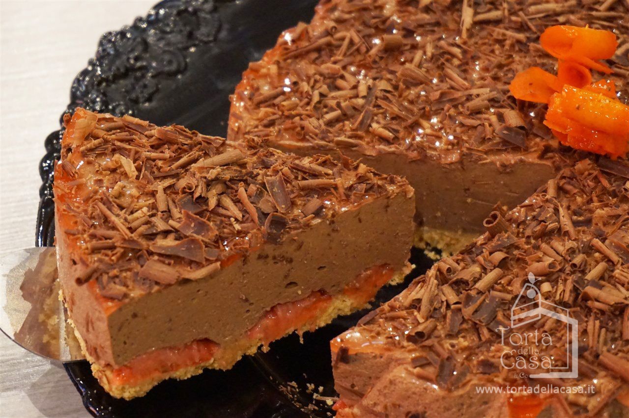 Trascorso il tempo di riposo in frigorifero, delicatamente aprite lo stampo a cerniera e con pazienza togliete la carta da forno aderente al bordo della torta.