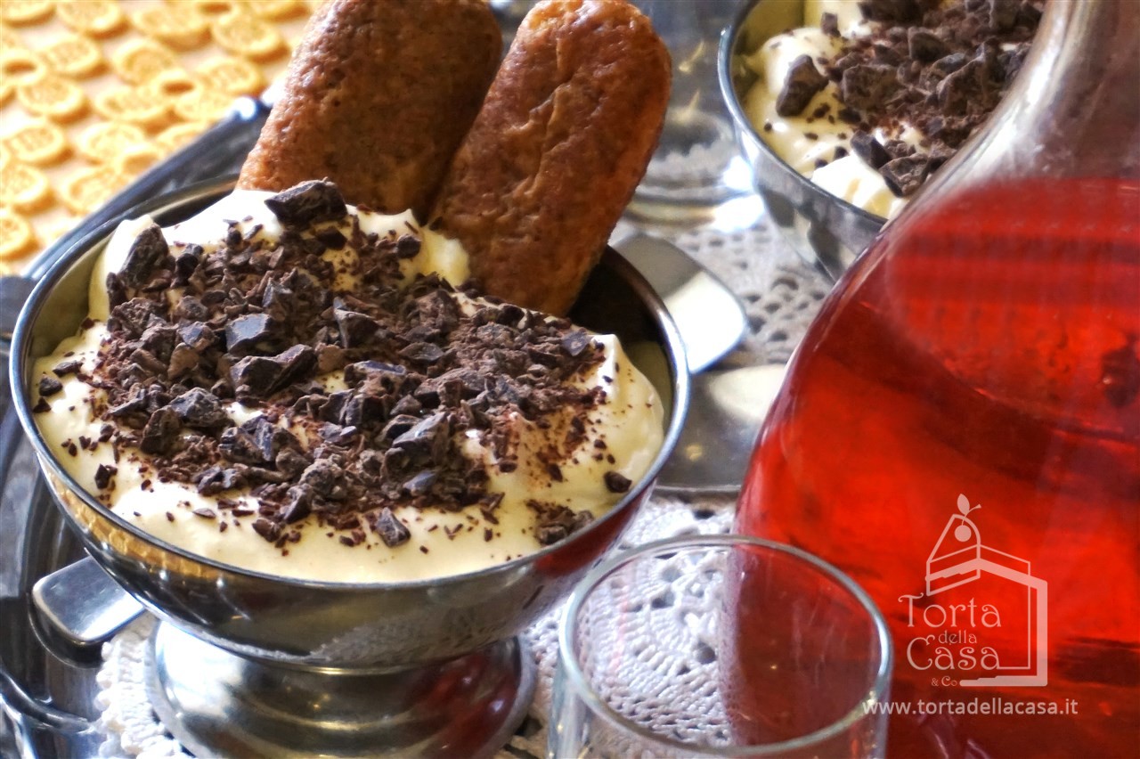 A piacimento, inzuppare i savoiardi nel caffè e disporli a lato della coppetta o sul fondo.
