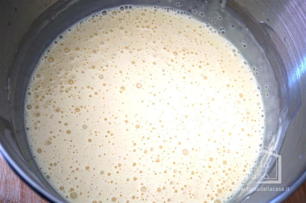 In un recipiente versate tutti gli ingredienti liquidi: uova, latte, acqua.