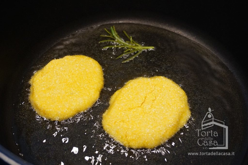 In un tegame antiaderente scaldiamo dell’olio di semi di girasole e lo portiamo a bollore con il ciuffetto di rosmarino. Quando noteremo che il rosmarino inizierà a friggere, è il momento di cuocere delicatamente i nostri mini burger.