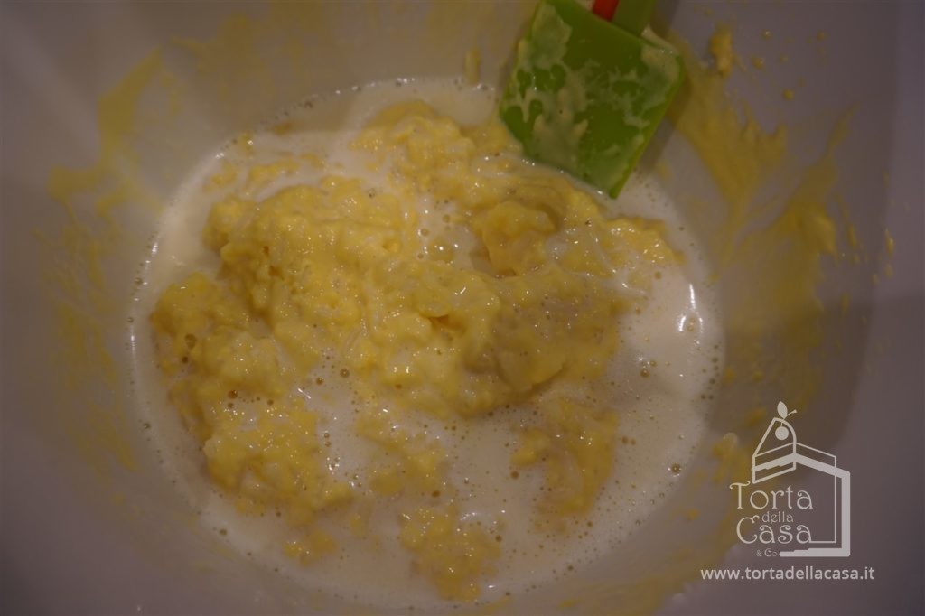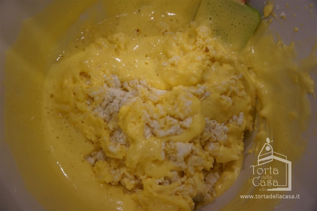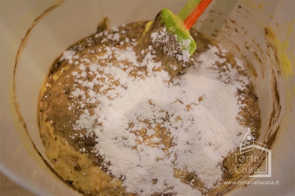 Aggiungere la farina setacciata e mescolare con la spatola.