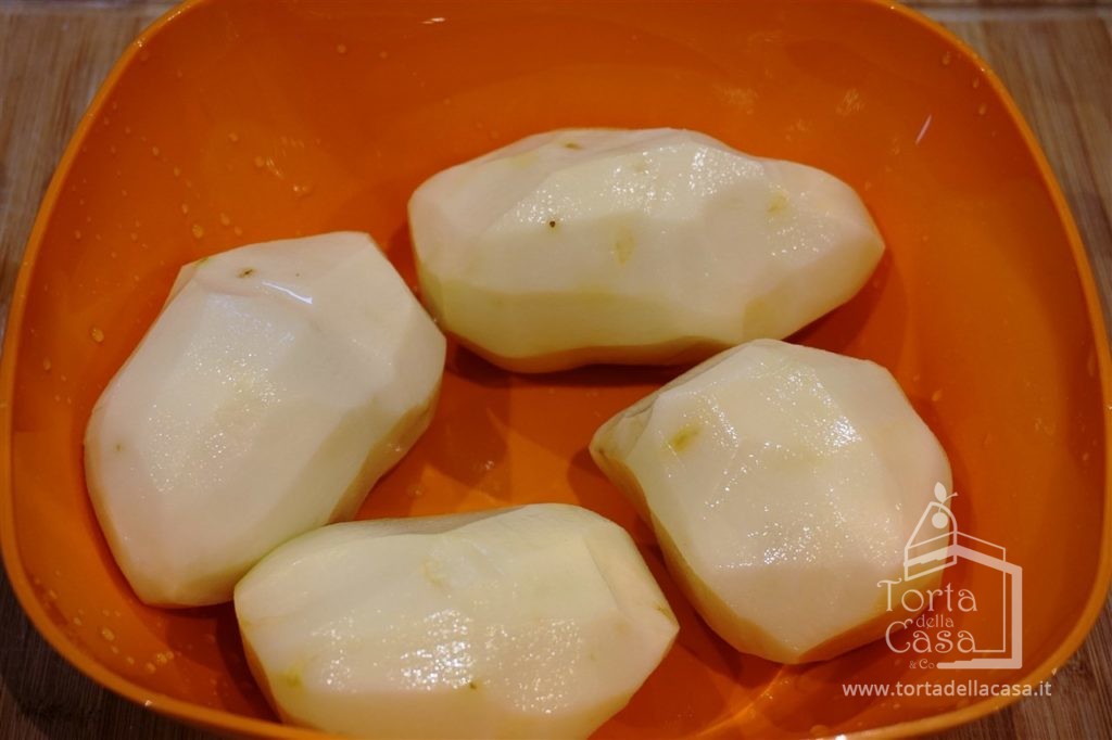 Pelare e lavare le patate sotto acqua corrente, poi asciugarle.