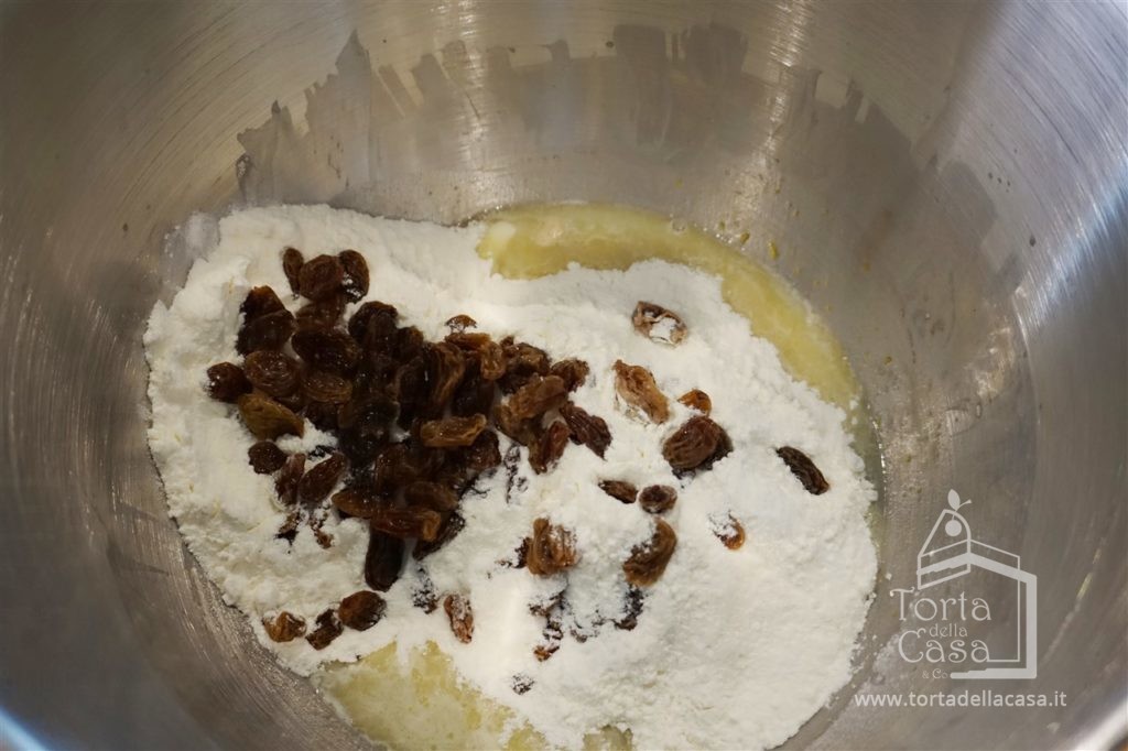 Aggiungere al composto la farina 00, l'uvetta strizzata ed il pizzico di sale.
