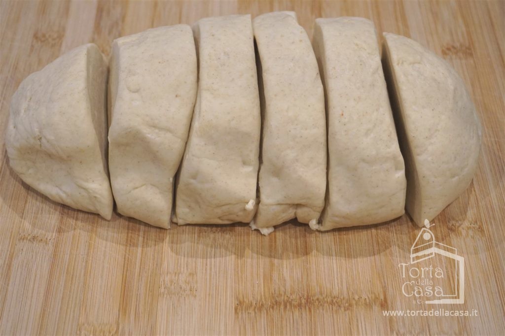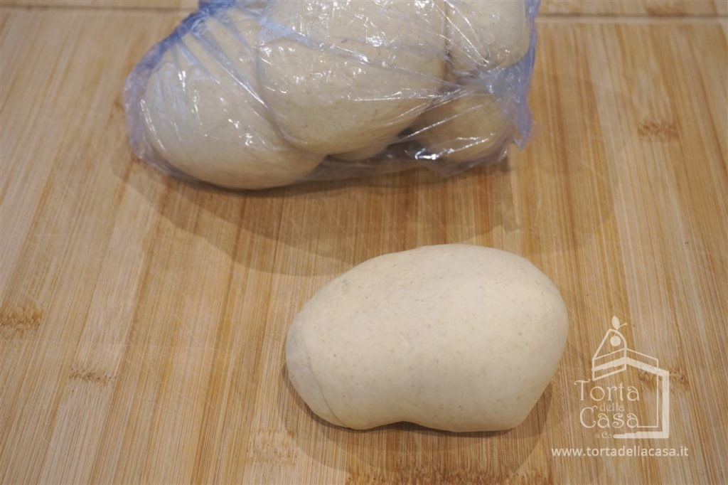 Trascorso questo tempo, lo impastiamo un attimo e lo tagliamo in 6/7 pezzi della stessa dimensione e dando ad ognuno la forma di una palla.