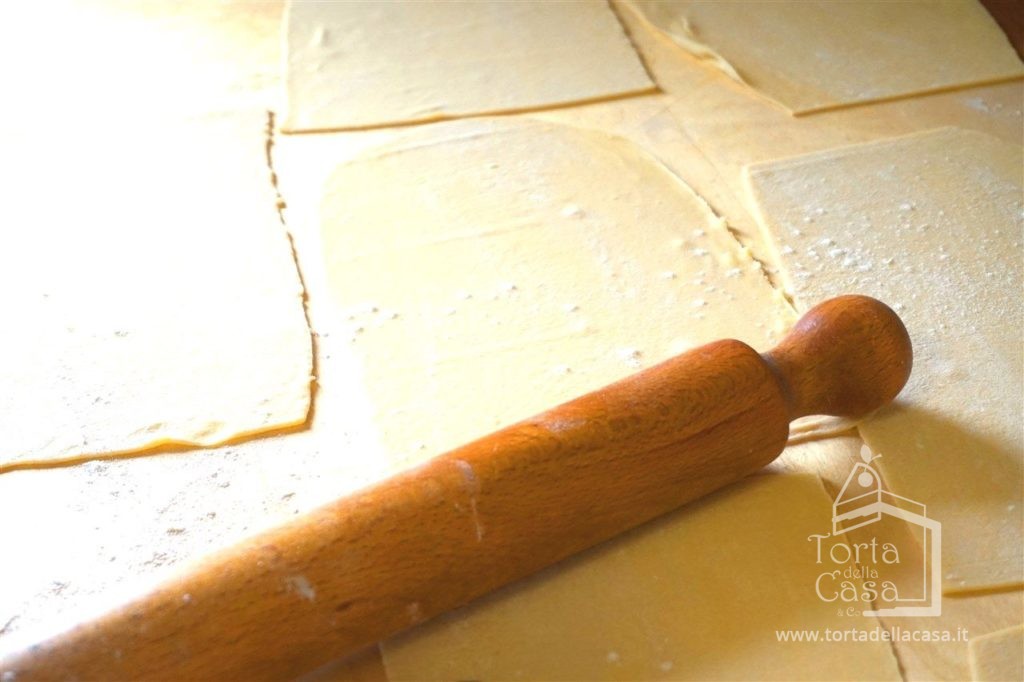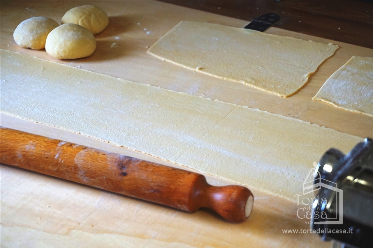 Prima di stenderlo con mattarello o macchinetta per la pasta, lasciate riposare il panetto per circa mezz’ora in un sacchetto di plastica per alimenti, oppure avvolto in della pellicola da cucina.