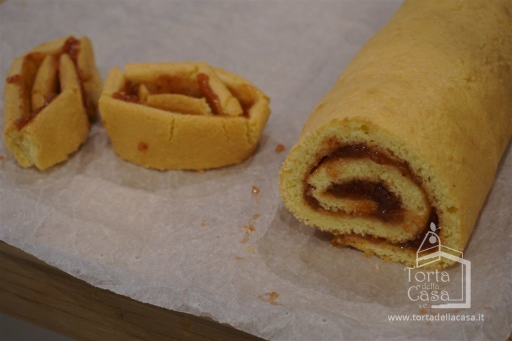 A rotolo ultimato, tagliare le estremità, impiattare e cospargere la superficie di zucchero a velo a piacere.