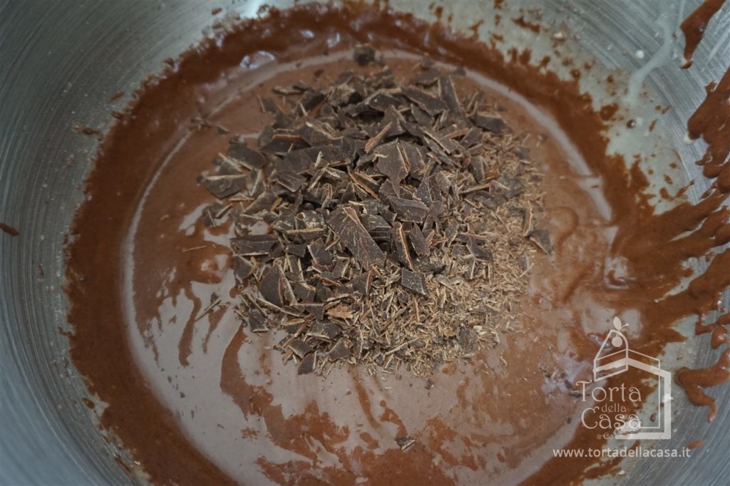 Aggiungere il cioccolato tritato avendone cura di lasciarne da parte 2 cucchiai che serviranno successivamente.